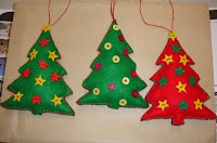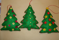 Arvores de Natal em feltro com diversas aplicações de fimo, lantejoulas e botões