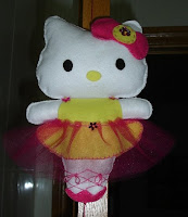 Hello Kitty Bailarina em feltro e outros tecidos com aplicações de lantejoulas, flores de tecido. Com aproximadamente 20 cm de comprimento.