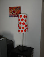 Candeeiro branco com bolas pintadas a laranja. este também se encontra na minha sala