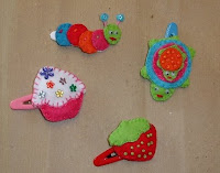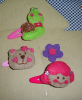 Ganchos em feltro com diversos bonecos, com aplicações de lantejoulas, missangas e fimo