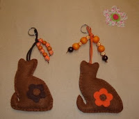Porta-Chaves Gatos em feltro com diversas aplicações de madeira, pedra, acrilico, lantejoulas