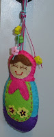 Porta-Chaves Matrioskas em feltro com aplicações de lantejoulas e flores de madeira