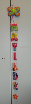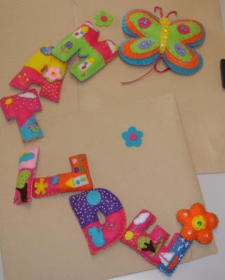Mobile com Borboleta, personalizado com o nome Matilde, de feltro, letras com aplicações em feltro e lantejoulas.