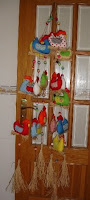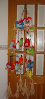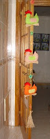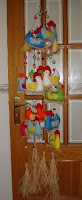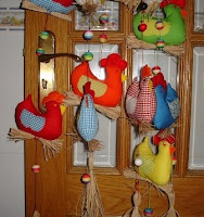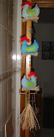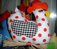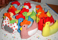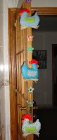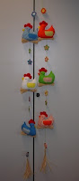 Mobile de galinhas de tecido de algodão liso ou fantasia em variadas cores com aplicações de corda e acrilico