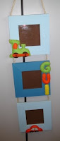 Moldura tripla em madeira totalmente feita por mim, pintada a azul claro e escuro, com corda entre cada moldura, com aplicações de feltro.