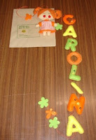 Mais um Mobile em feltro com a Pipi das Meias Altas, com o nome Carolina, com aplicações de lantejoulas