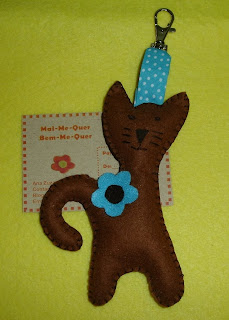 Deixo este Porta-Chaves Gato de feltro castanho com adornos em azul turquesa, foi uma prendinha muito especial para a Dora, já sei que ela gostou. Espero que vocês também gostem.