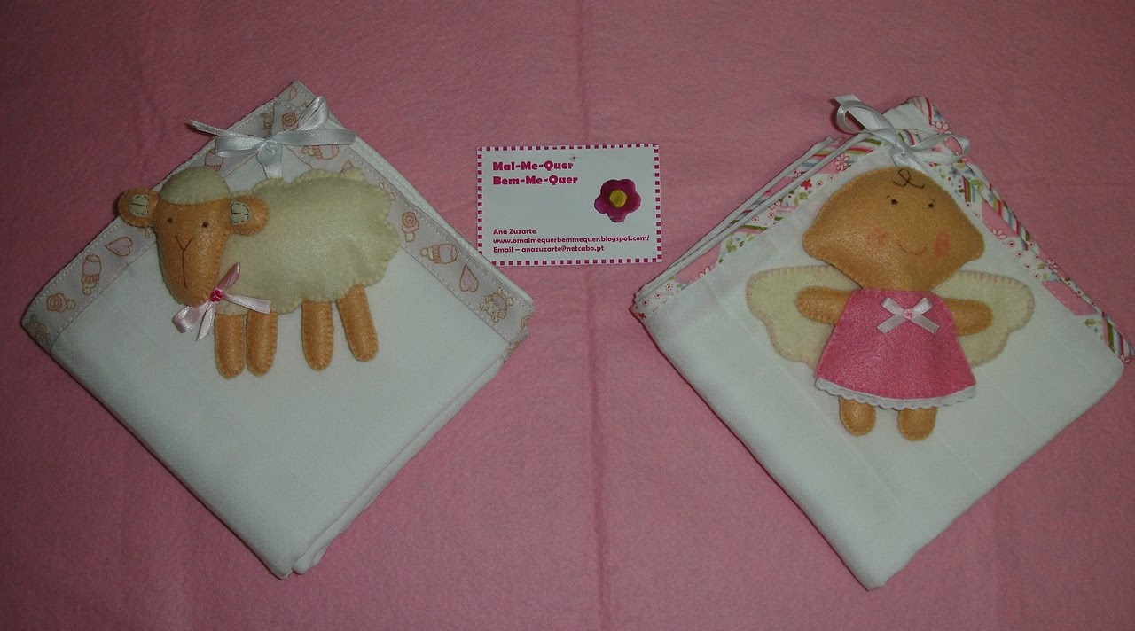 Deixo-vos duas fraldinhas que na minha opinião estão muito fofinhas, são 2 em 1, ou seja o boneca tira-se para lavar ou para o bebé brincar, espero que gostem.